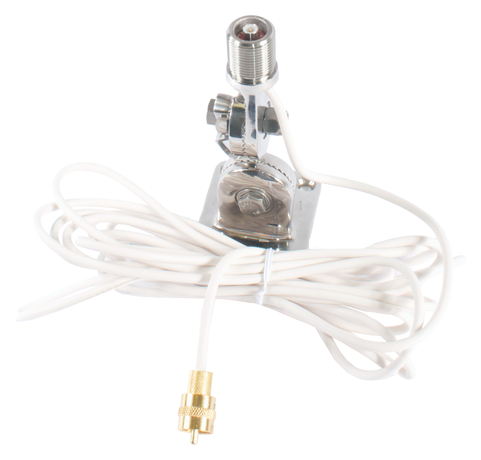| $79.95 Cobra 5' Fiberglass VHF Antenna Perfect when matched with any Cobra 25W VHF radio, the Cobra 5' Fiberglass VHF Antenna maximizes signal clarity and range for ultimate communicating power. The extended frequency range on this VHF radio antenna provides up to 162 MHz for VHF radio signal MORE... | $109.99 Shakespeare QuickConnect Antenna Mount When it's time to install an antenna to your boat, trust the reliable strength and engineering provided by the Shakespeare QuickConnect Antenna Mount. This stainless steel ratchet mount is made to be affixed to the boat's deck or sides, and it can hold an MORE... |