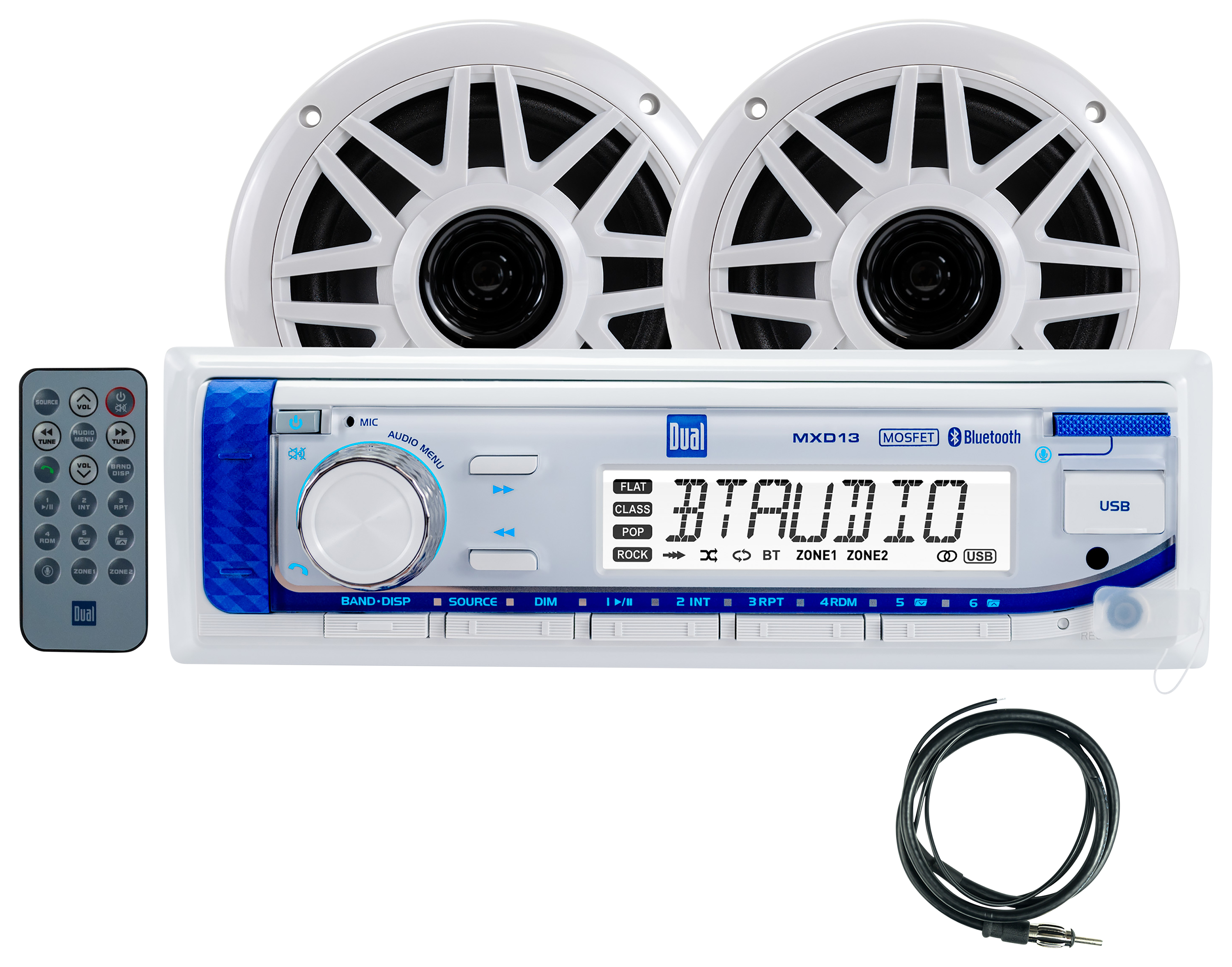 | $94.99 Boss Audio Marine MP3-Compatible Digital Media AM/FM Receiver with Bluetooth and Speakers You could buy your boat stereo in pieces, or you can get everything you need with the Boss Audio Marine MP3-Compatible Digital Media AM/FM Receiver with Bluetooth and Speakers. This full-featured marine stereo system includes the MCK632WB.6 marine audio r MORE... | $89.99 Dual Digital Media Receiver with Two 6.5″ Speakers Enhance your boating experience with the Dual Digital Media Receiver and 6.5" Speakers, a rugged, high-performance audio system built for life on the water. Designed for durability and superior performance, this combo pack includes a marine digital media MORE... |