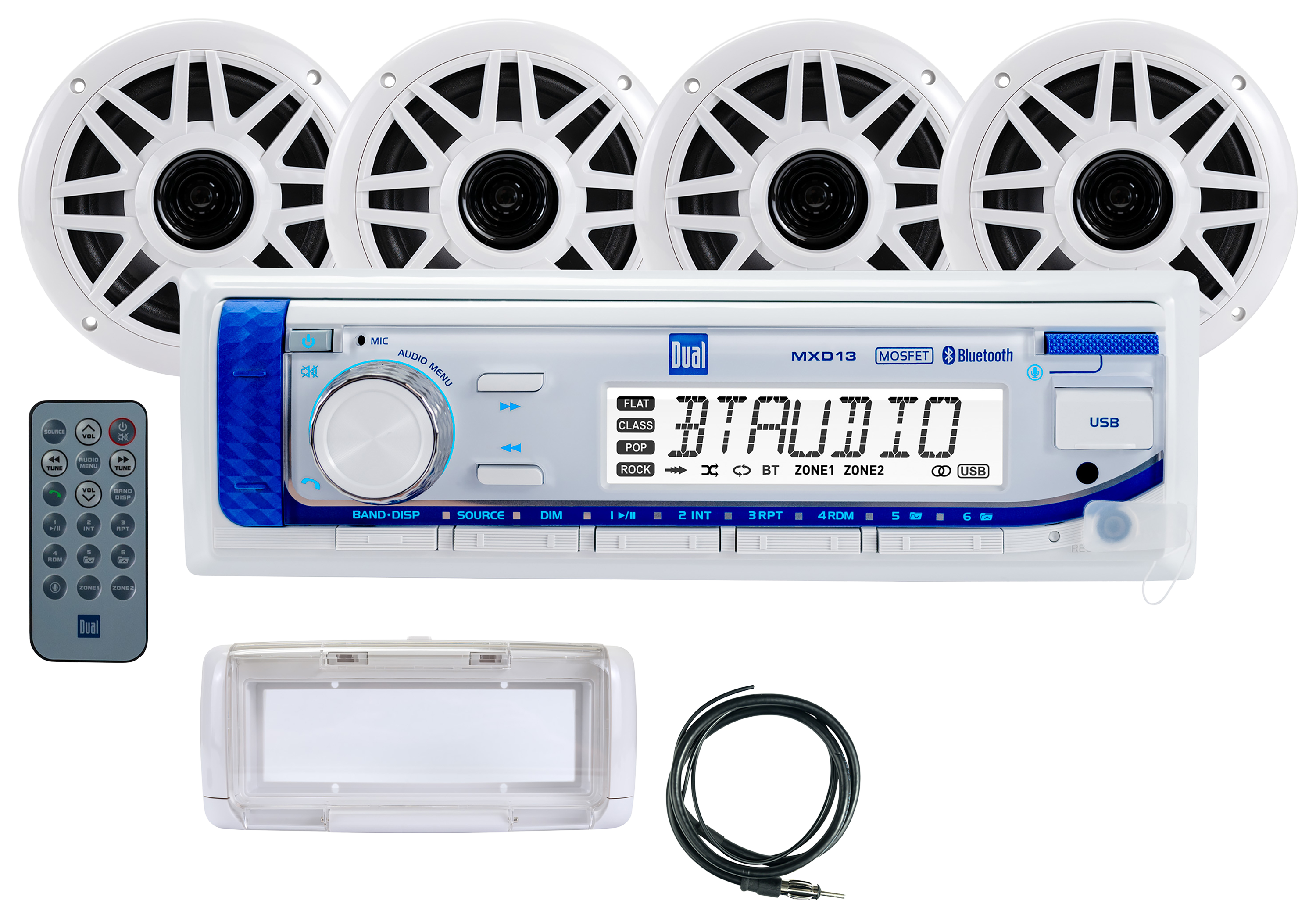 | $107.95 DS18 Round Marine Waterproof Universal Bluetooth Streaming Audio Receiver with Functions Control for Android or iPhone Now you can add Bluetooth connectivity for any audio system with the easy-to-use DS18 Round Marine Waterproof Universal Bluetooth Streaming Audio Receiver with Functions Control for Android or iPhone. Many applications leave little to no room for large, b MORE... | $134.99 Dual Digital Media Receiver with Four 6.5″ Speakers Enhance your boating experience with the Dual Digital Media Receiver and 6.5" speaker set, a rugged, high-performance audio system built for life on the water. Designed for durability and superior performance, this combo pack includes a marine digital med MORE... |